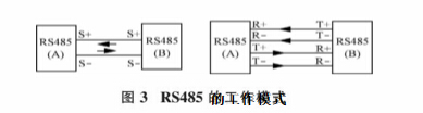 特點是傳輸距離遠, 通信可靠性高, 可以實現(xiàn)以總線為基礎的多設備網絡方式通信等特點。RS485 通常有半雙工和全雙工兩種工作方式, 如圖 3 所示。