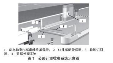 根據目前高速公路收費口所安裝的公路計重收費裝置一動態軸重地磅(圖1),其實際承載面 積較小,寬度只能適應車輛每個單軸依次通過。