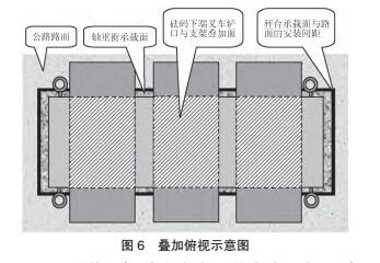 通過組合疊加的方式,將3個M形砝碼分別扣在專用砝碼承載支架上進行組合疊加,不僅可在承載支架的同一水平面上加載3個1 t扁形砝碼,也使扁形砝碼有效利用支架橫向的上、下空間而向外伸展,降低了砝碼疊加的高度。通過合理的疊加,可實現所需量程范圍的加載。疊加俯視圖,如圖6所示。
