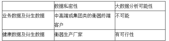 基于健康數據及衍生數據的大數據分析具有可行性,且這類數 據和大數據分析,對衡器生產廠家來說,有一定的機密性。