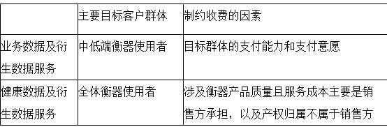 又因衡器生產廠家本身肩負衡器產品質量和承擔售后服務功能,且售后服務費用在質保期內主要是其自身承擔,故向終端用戶收取健 康數據的服務費水平和規模也有限。