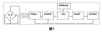 第一,數(shù)字式地磅的儀器儀表與傳感器之間的接口 一般都采用數(shù)字通訊接口,采用總線結(jié)構(gòu),便于多個(gè)稱重傳 感器的應(yīng)用,協(xié)議傳輸,高速且具通信糾錯(cuò)能力,保證了 數(shù)據(jù)快速可靠傳輸,儀表直接接收的數(shù)字信號,傳輸線長度 可達(dá)1000多米,輸出信號電壓為3伏?4伏,提高了抗干擾 能力,并且加快了通信速度。另外數(shù)字傳感器的核心處理器 CPU對各種環(huán)境參數(shù)變化引起的弱小誤差能自動(dòng)進(jìn)行計(jì)算和 修正,提高了系統(tǒng)防雷擊能力。由于通訊協(xié)議屬廠家專利具 有較強(qiáng)的保密性,有效的實(shí)現(xiàn)了防作弊;而一般的模擬式地磅的儀器儀表與傳感器之間的接口是采用的模擬接口,儀 器儀表接收傳感器的信號是模擬的、毫伏級的,一般只有不 大于30米傳輸距離。第二,數(shù)字式地磅接收的信號是數(shù)字 的,調(diào)整角差時(shí),通過軟件的處理自動(dòng)完成,免去了反復(fù)加 載聯(lián)碼的麻煩,非常簡便快捷。然而模擬式地磅為了實(shí)現(xiàn) 角差調(diào)整的目的需要調(diào)整接線盒中的電位器,費(fèi)力費(fèi)時(shí)很容 易作弊。數(shù)字式地磅的優(yōu)越性主要來自于數(shù)字式稱重傳感 器,其內(nèi)部工作原理大致分為四步。如圖1所示: