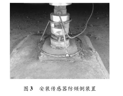 隨著天氣氣溫升高,出現新增傳感器脫離壓頭傾倒情況,導致設備無法正常計量。分析原因為:秤體經過過載計量后,秤體平衡性遭到一定破壞,并且秤臺在高溫天氣熱脹冷縮變化較大, 傳感器與秤體結合不緊密,空隙較大,這樣傳感器就容易傾倒,傳感器出現橫向力、側向力等非受力方向上的加載力,容易導致傳感器損壞,根據此情況制作了傳感器防傾倒裝置,經過試驗有效的避免的傳感器的傾倒現象。