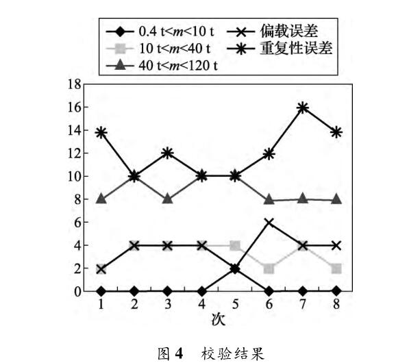 本次汽車衡改造完成后按照國家檢定規程對該汽車衡進行檢定,經過計量確認后合格, 完全滿足120 t檢斤車輛計量能力,并且該汽車衡在運行后2月內每周對其計量性能進行校驗,校驗結果如表1和圖4所示。
