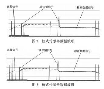 在同一臺秤上同時安裝柱式傳感器與橋式傳感器,將它們的信號同時引入儀表,采集車輛通過秤臺時的信號波形。結果采集到的兩種傳感器的輸出波形驚人的一致,如圖2、圖3所示。為什么會出現這樣的情況呢?因為秤體固有頻率只有幾赫茲,而橋式傳感器固有頻率在上千赫茲,已完全滿足衡器數據采集需要,柱式傳感器更高的固有頻率發揮不出優勢。